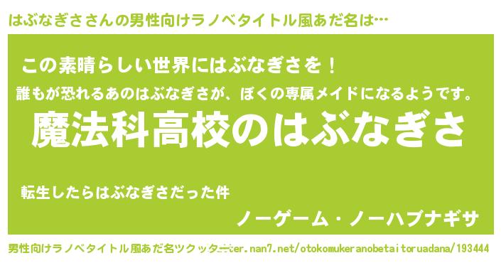 | ヒーロー風カッコイイあだ名 | 『ウルトラ戦士ハブナギサ』 |