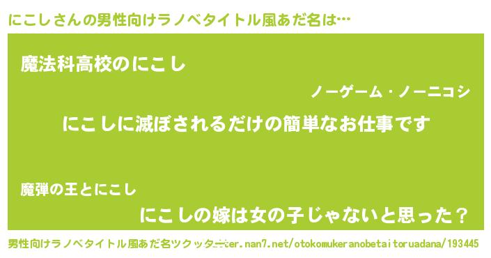| 意味不明あだ名 | 『自称にこし』『とにかく怪しいにこし』 |