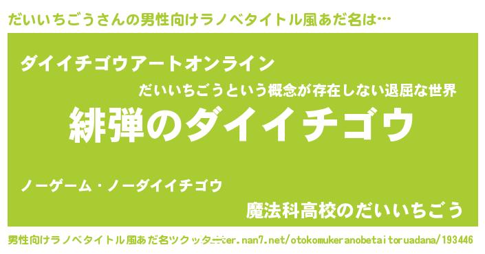 | 胡散臭い通販商品みたいなあだ名 | 『必ず成功するブレスレット…その名も「だいいちごう」』 |