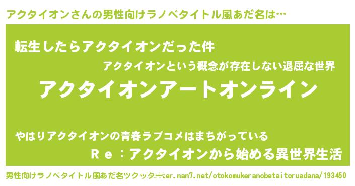 | 胡散臭い通販商品みたいなあだ名 | 『モテモテ間違いなし水晶球…その名も「アクタイオン」』 |