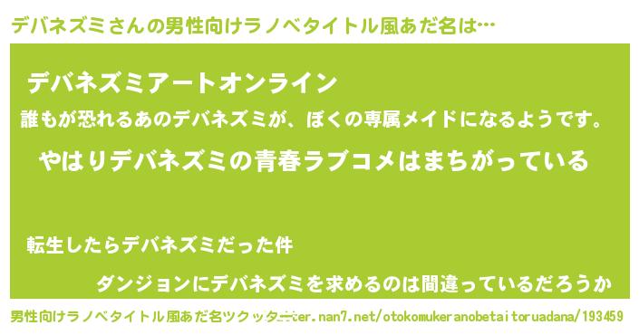 | ファンタジー風あだ名 | 『エターナルデバネズミー』『デバフェル』 |