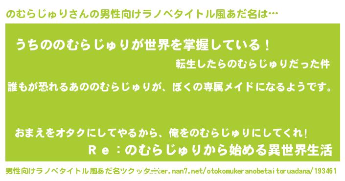 | 女子向けラノベタイトル風あだ名 | 『異世界でカフェのむらじゅりを開店しました。』 |