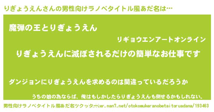 | 胡散臭い通販商品みたいなあだ名 | 『あなたにだけ特別に提供する世界で10本だけ現存している希少なブランデー…その名も「りぎょうえん」』 |