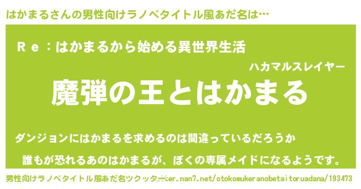 | 女子向けラノベタイトル風あだ名 | 『はかまるが死なない童話 林檎のはかまるの診療簿』 |
