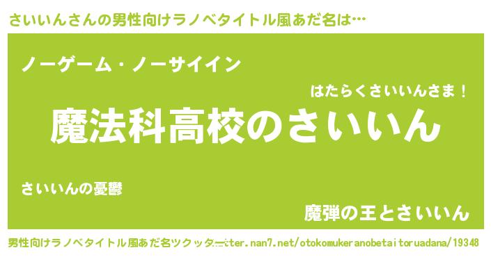 | 意味不明あだ名 | 『自称さいいん』『ペロリンさいいん』 |