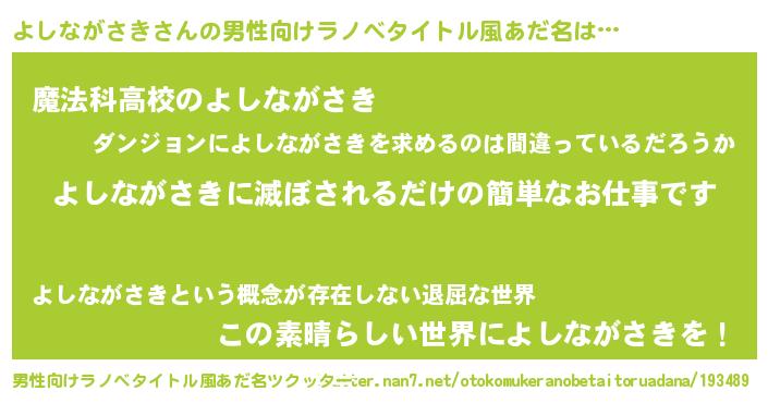 | 意味不明あだ名 | 『自称よしながさき』 |
