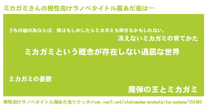 | 胡散臭い通販商品みたいなあだ名 | 『絶対に幸福をもたらす健康食品…その名も「ミカガミ」』 |
