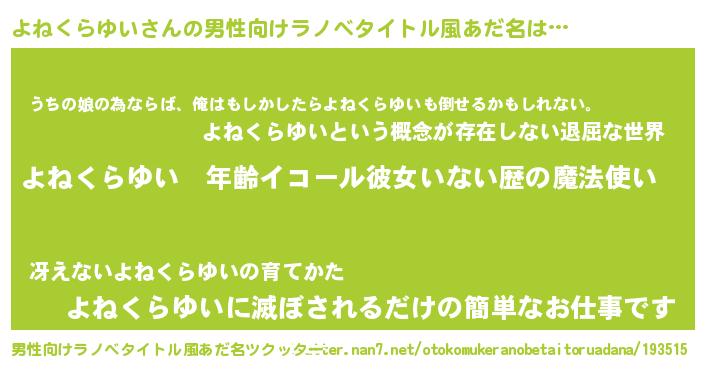 | 肩書あだ名 | 『よねくらゆい大将』『よねくらゆい先生』 |