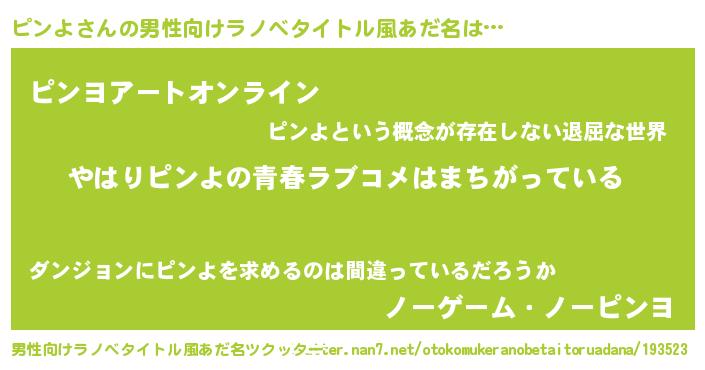 | 胡散臭い通販商品みたいなあだ名 | 『幸せが訪れる高級そうな壺…その名も「ピンよ」』 |