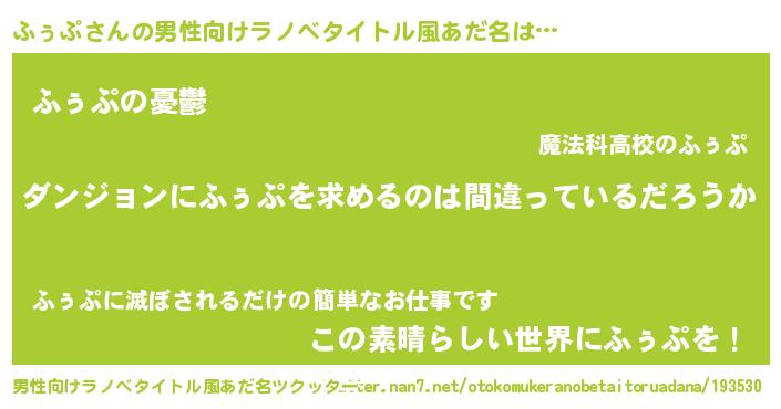 | 女子向けラノベタイトル風あだ名 | 『ふぅぷは平凡を望む』 |