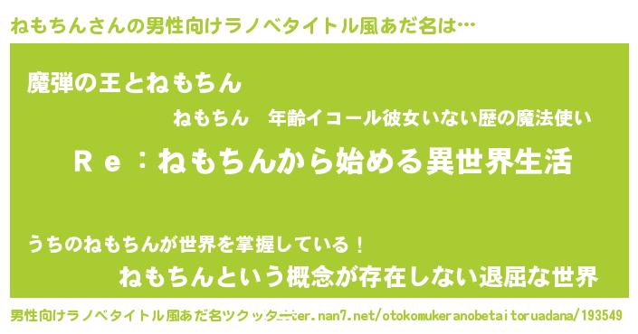 | 女子向けラノベタイトル風あだ名 | 『闇のねもちん』 |