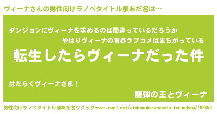 | 女子向けラノベタイトル風あだ名 | 『ヴィーナの玉の輿計画!』 |