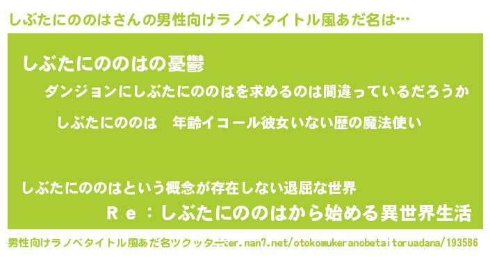 | 胡散臭い通販商品みたいなあだ名 | 『億万長者になれるブレスレット…その名も「しぶたにののは」』 |