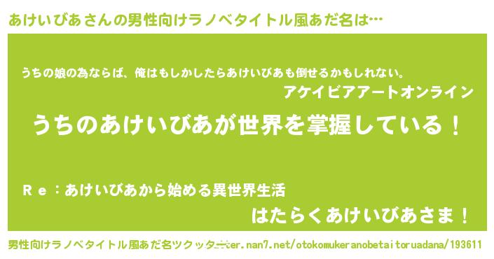 | 意味不明あだ名 | 『あけいびあフォーエバー』 |