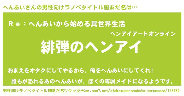 | ヘコむあだ名 | 『へんあい(笑)』『へんもー』 |