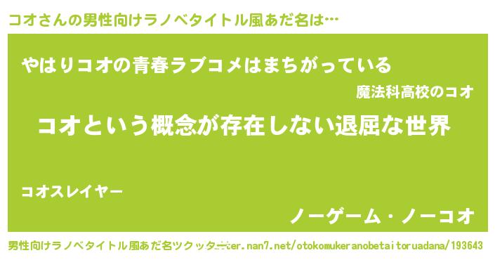コオさんの男性向けラノベタイトル風あだ名をツクッター!