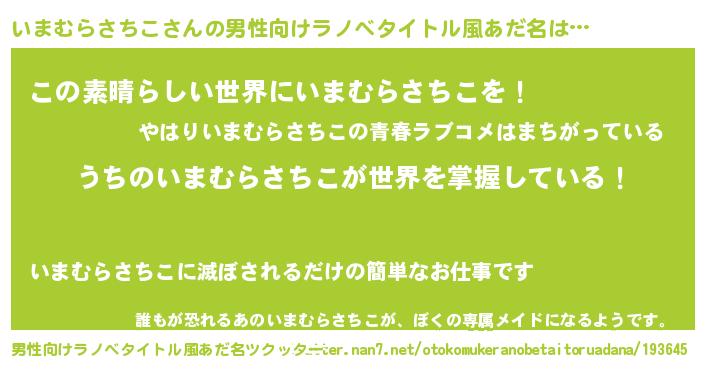 | 意味不明あだ名 | 『住所不定無職いまむらさちこ(1歳)』 |