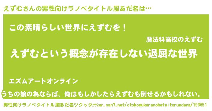 | 女子向けラノベタイトル風あだ名 | 『異世界で失敗しない100のえずむ』 |