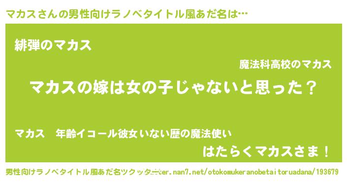 | 女子向けラノベタイトル風あだ名 | 『マカスの卵を拾いまして』 |