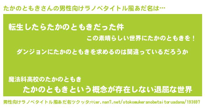 | 女子向けラノベタイトル風あだ名 | 『たかのともきは平凡を望む』 |