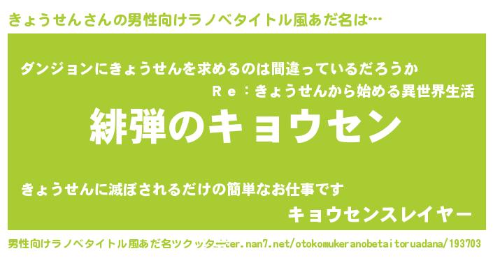 | ヒーロー風カッコイイあだ名 | 『暗黒騎士キョ』『最強戦士キョウセン』 |