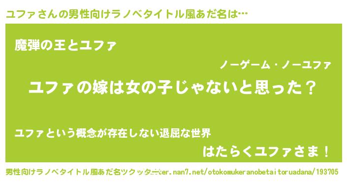 | 女子向けラノベタイトル風あだ名 | 『ユファ様がみてる』『死神ユファの再婚』 |
