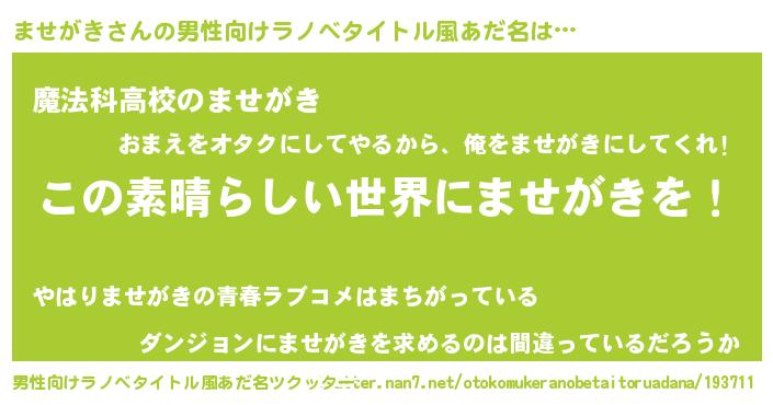 | 胡散臭い通販商品みたいなあだ名 | 『世界中を虜にした世界で10本だけ現存している希少なブランデー…その名も「ませがき」』 |