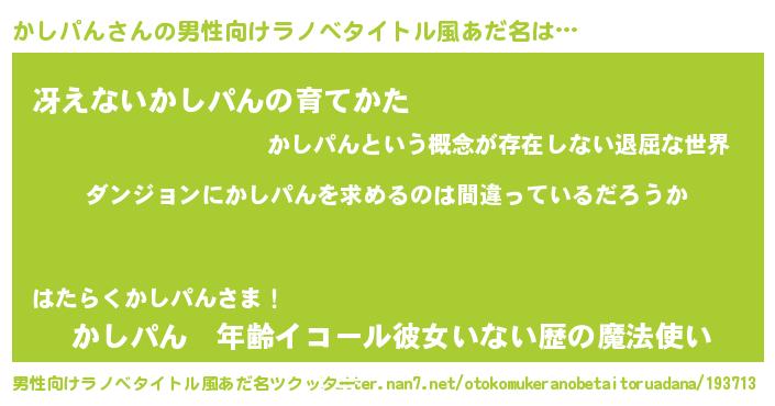 | 女子向けラノベタイトル風あだ名 | 『かしパんは平凡を望む』 |