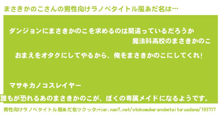 | 女子向けラノベタイトル風あだ名 | 『まさきかのこ夫妻のなれそめ』 |