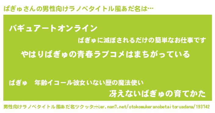 | 胡散臭い通販商品みたいなあだ名 | 『幸せが訪れる高級そうな壺…その名も「ばぎゅ」』 |