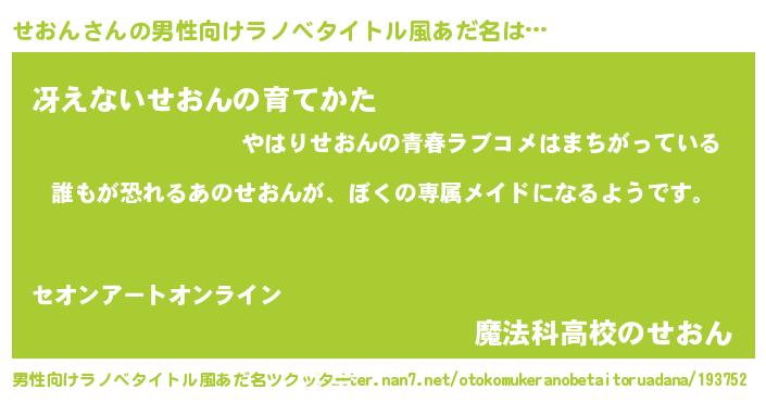 | 女子向けラノベタイトル風あだ名 | 『異世界でカフェせおんを開店しました。』 |