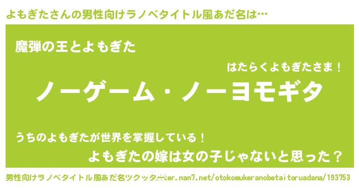 | ヘコむあだ名 | 『よもっぺ』『酢こんぶ』 |