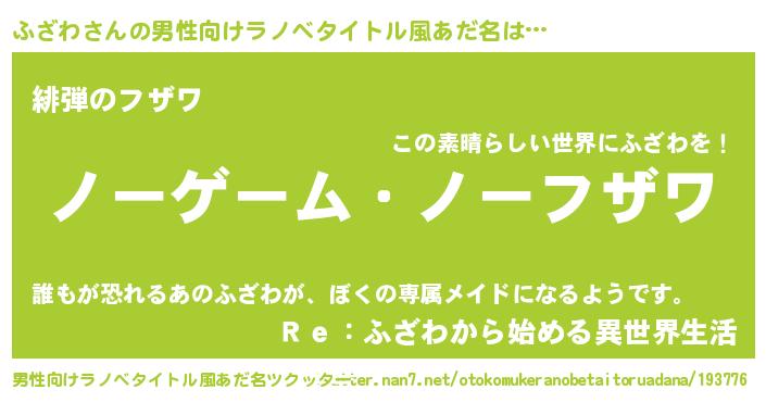 | ヘコむあだ名 | 『ふざわ(苦笑)』『つくし』『ふざを』 |