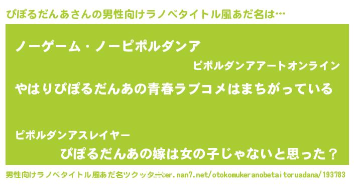 | 女子向けラノベタイトル風あだ名 | 『ぴぽるだんあ伯爵の花嫁』 |