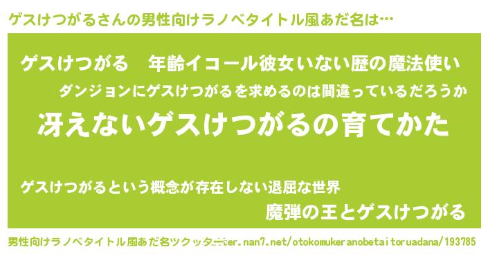 | 胡散臭い通販商品みたいなあだ名 | 『世界中を虜にした世界で10本だけ現存している希少なブランデー…その名も「ゲスけつがる」』 |