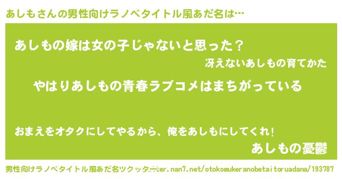 | 胡散臭い通販商品みたいなあだ名 | 『幸せが訪れる高級そうな絵画…その名も「あしも」』 |