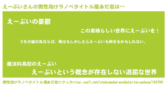 | 胡散臭い通販商品みたいなあだ名 | 『運命の人と巡り会える高級そうな皿…その名も「えーぶい」』 |
