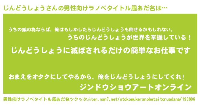 じんどうしょうさんの男性向けラノベタイトル風あだ名をツクッター!