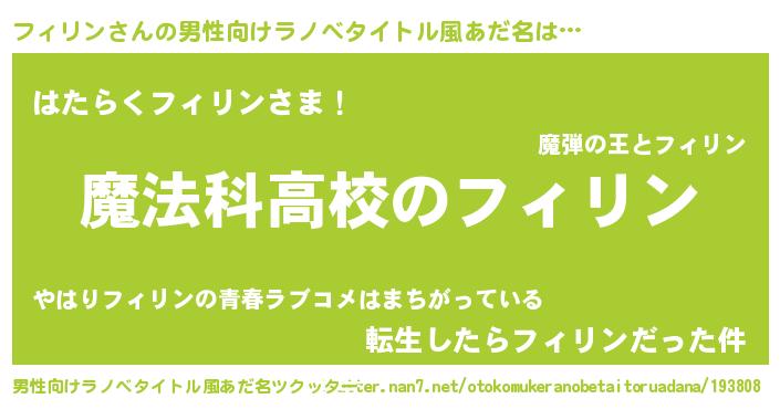 | 意味不明あだ名 | 『自称フィリン』『しいたけ科フィリン属』 |