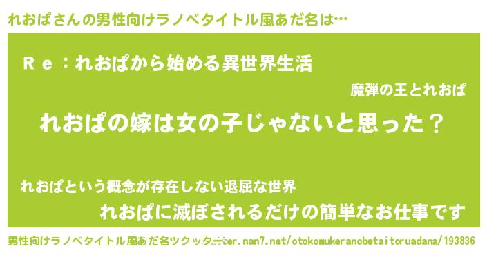 | 女子向けラノベタイトル風あだ名 | 『れおぱ様がみてる』 |