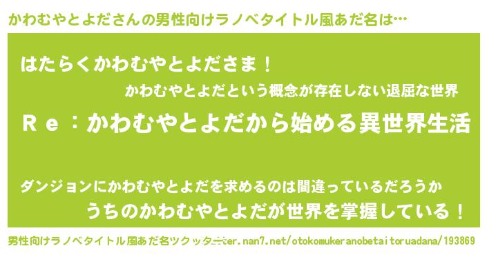 | 意味不明あだ名 | 『自称かわむやとよだ』 |