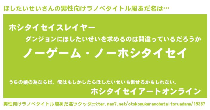 | 肩書あだ名 | 『ほしたいせい助教授』『ほしたいせいCEO』 |