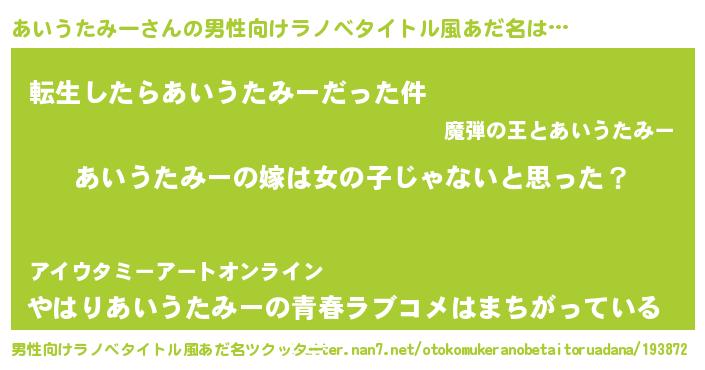 | 伝説のあだ名 | 『覚醒した遊び人あいうたみー』 |
