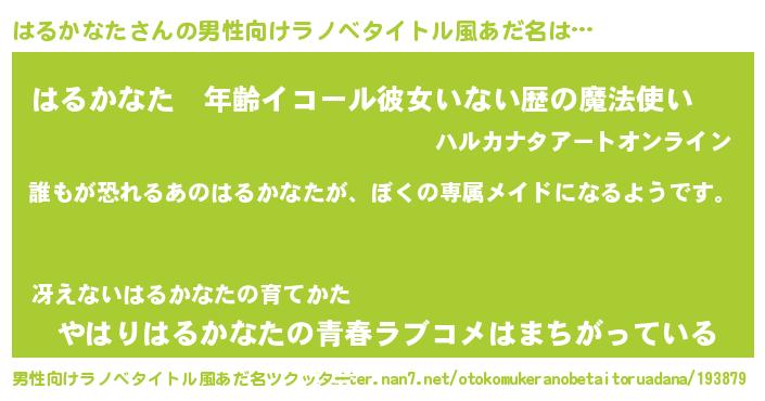 | 女子向けラノベタイトル風あだ名 | 『異世界でカフェはるかなたを開店しました。』 |