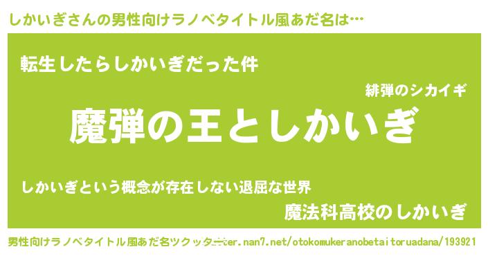 | 意味不明あだ名 | 『住所不定無職しかいぎ(53歳)』 |