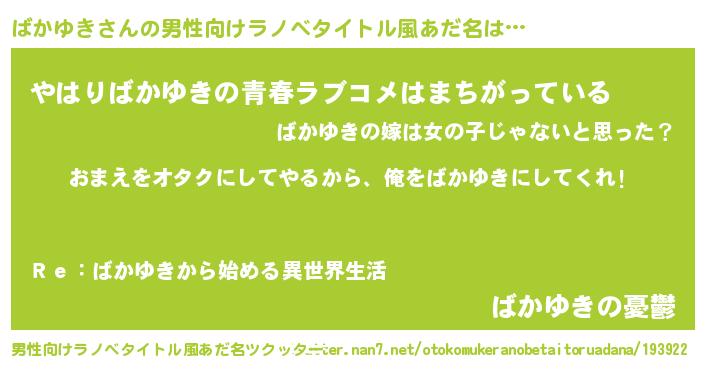| ファンタジー風あだ名 | 『クインバット』『エターナルバカユキー』 |