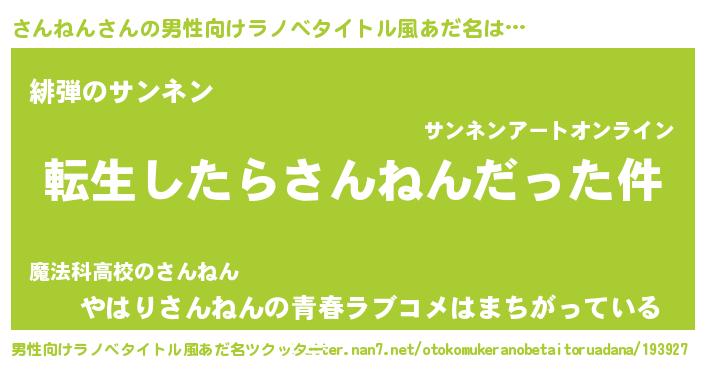 意味不明あだ名 | 『なめこ科さんねん属』『自称さんねん』 |