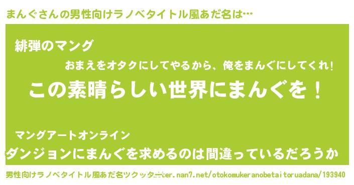 | 意味不明あだ名 | 『住所不定無職まんぐ(89歳)』 |