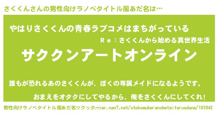 | ファンタジー風あだ名 | 『サクフェル』『エターナルサククンー』 |