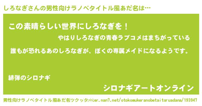 | 欧米人風あだ名 | 『ダルビッシュしろなぎ』 |